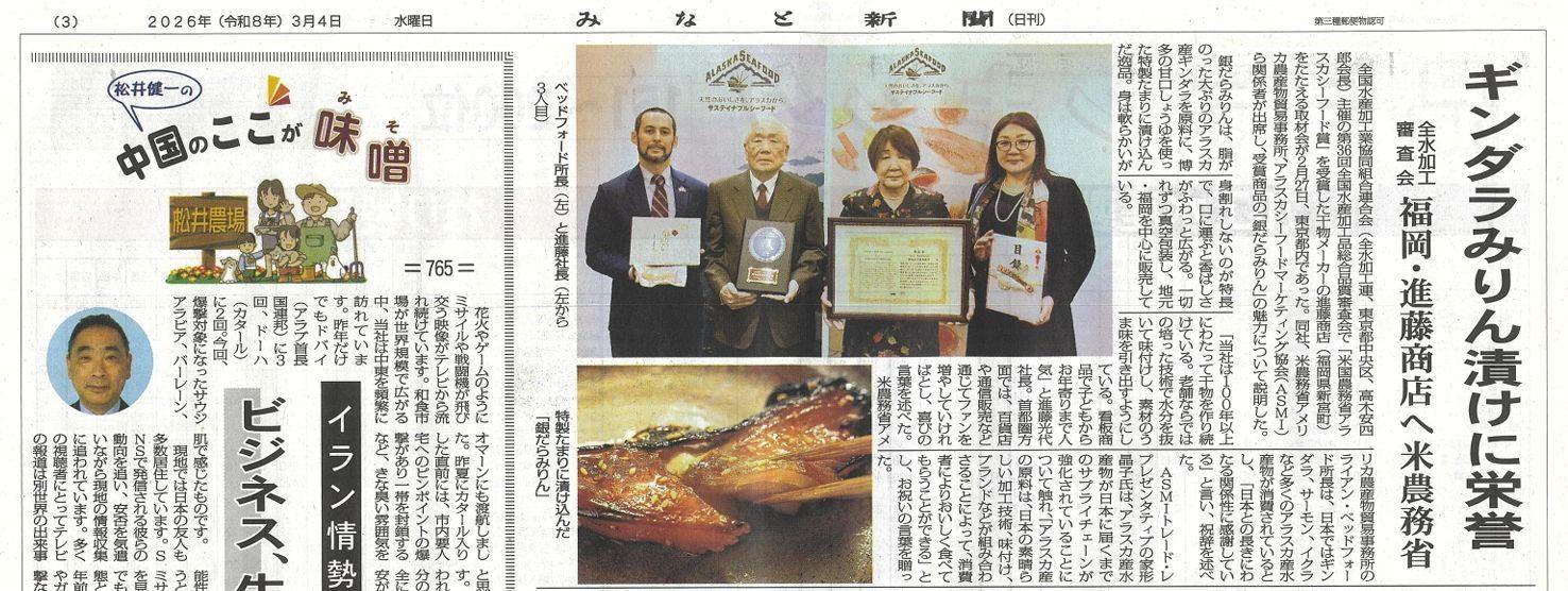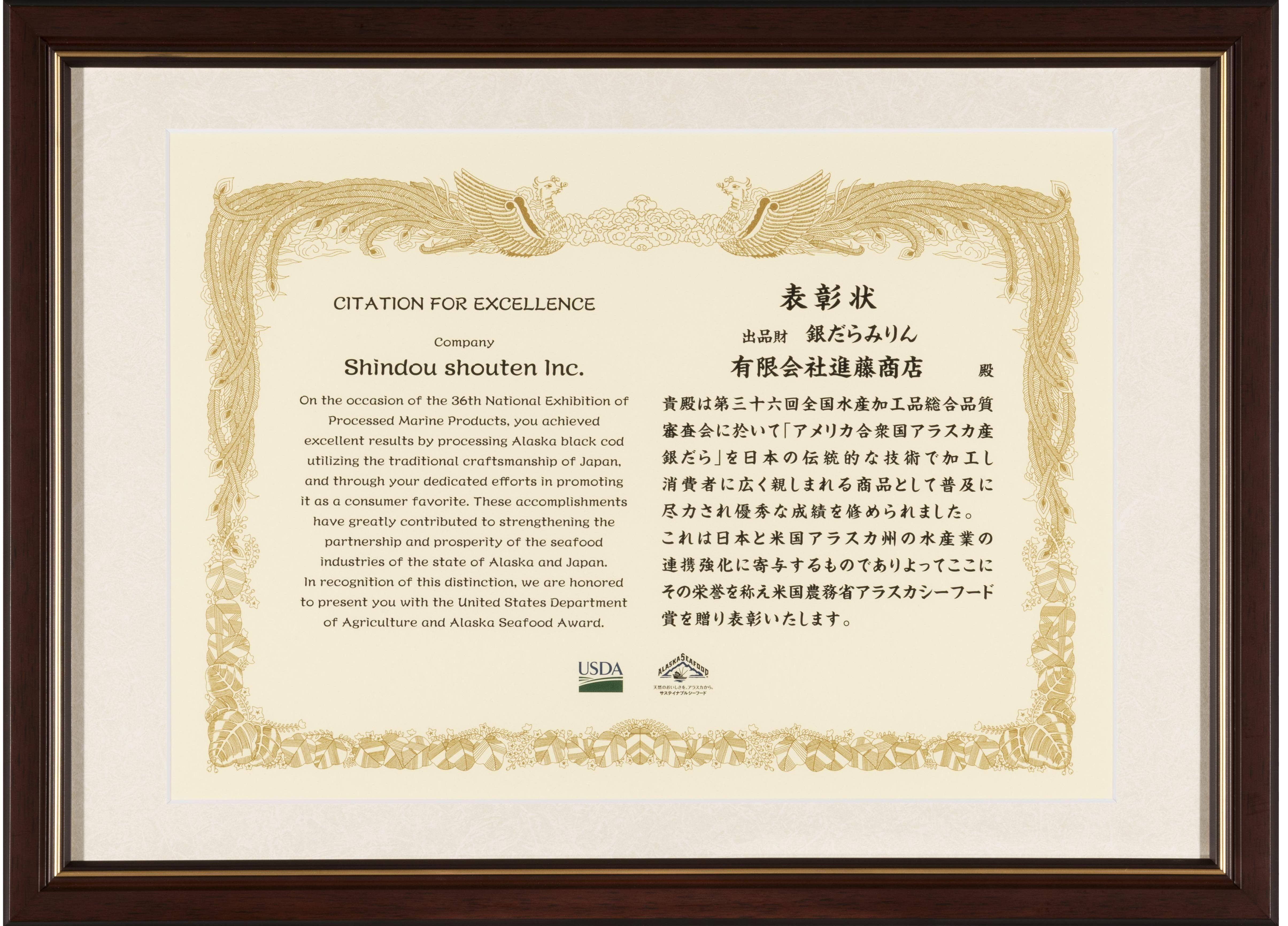 海を想うとともに、受賞の喜びを家族で楽しんでいただけたらと思います。